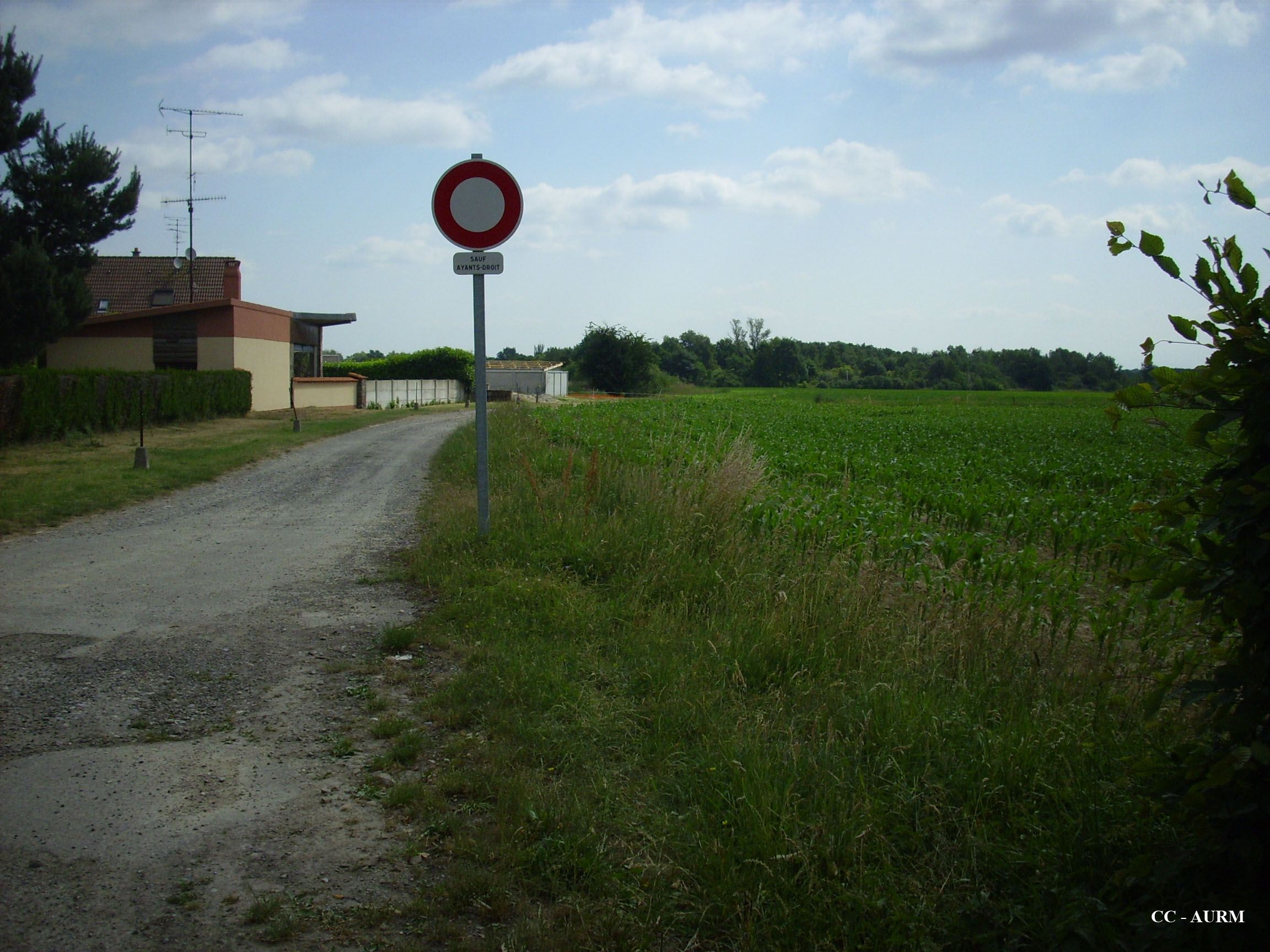champs de maïs. pré. route. maison.