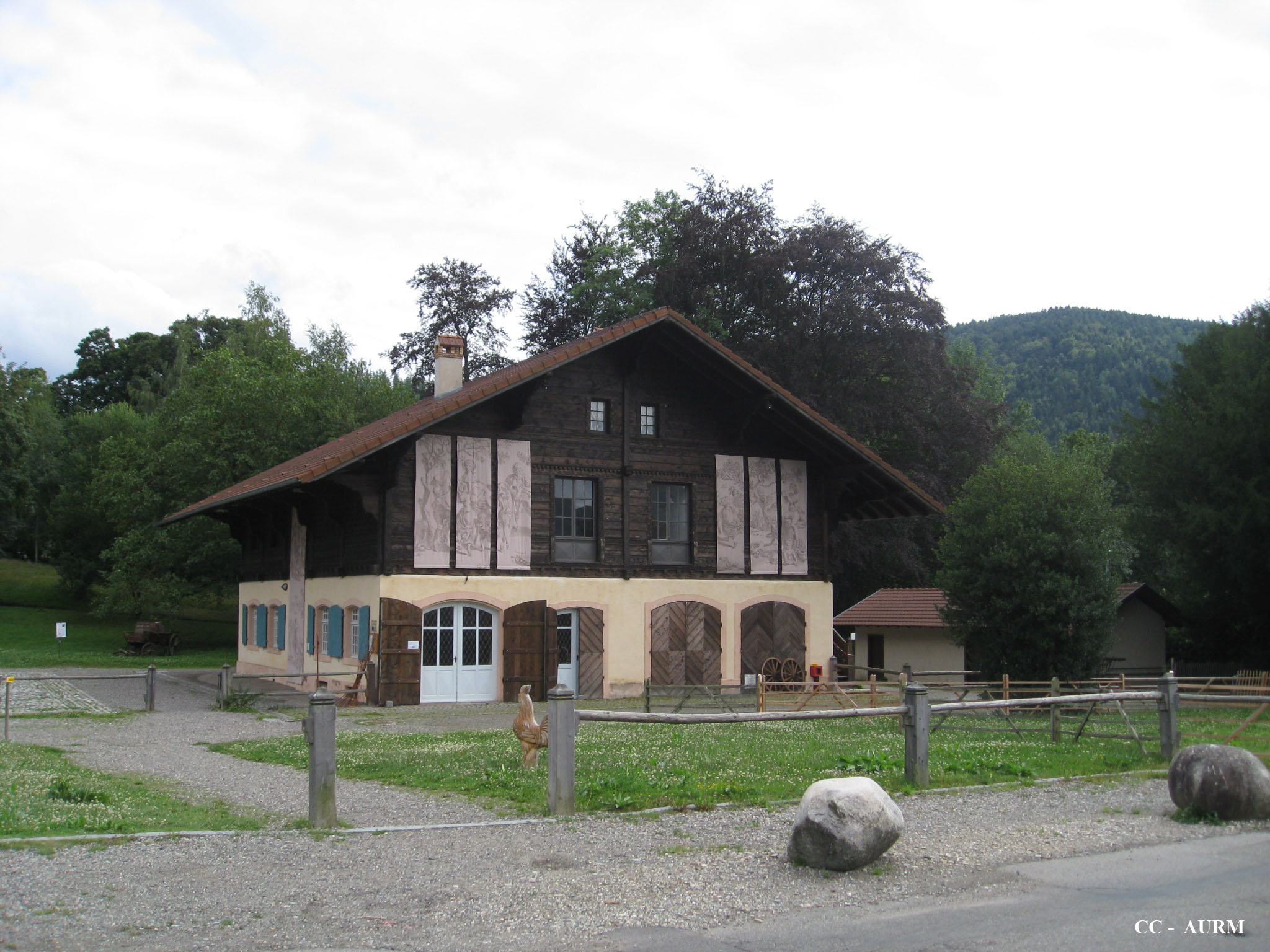 maison en bois. chalet. ferme. arbre.