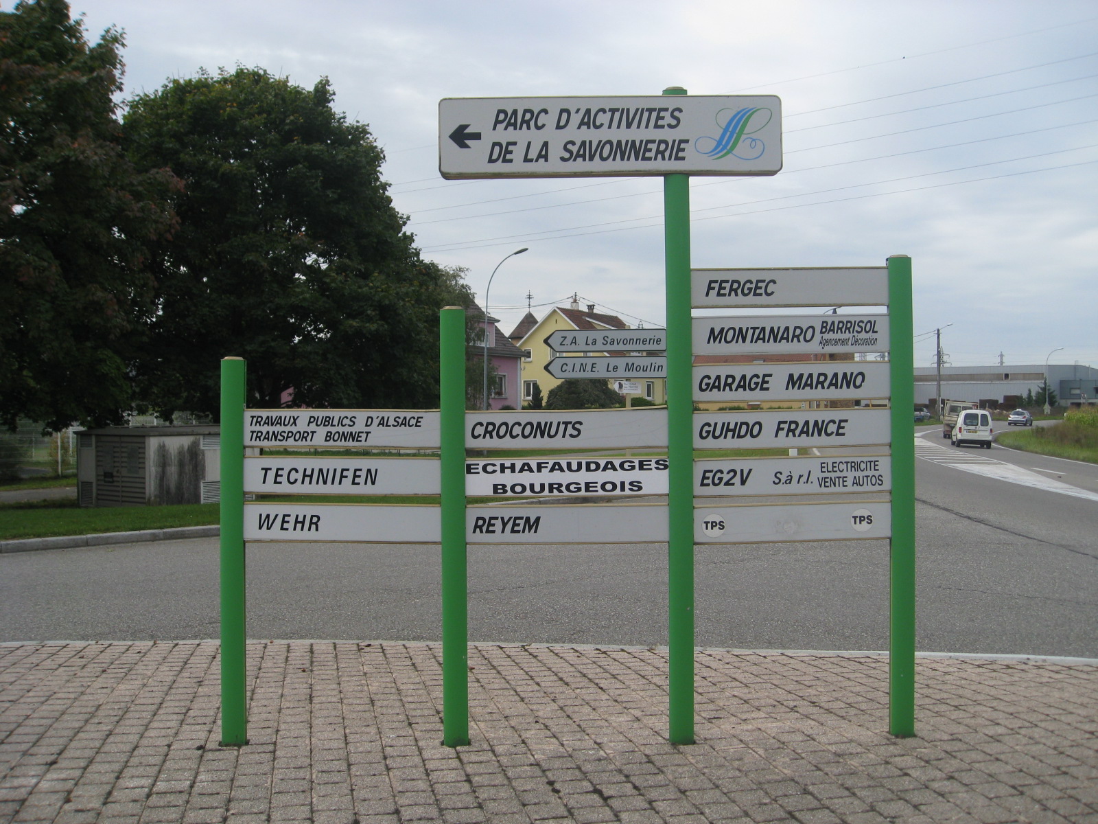 Panneaux. Route. Rond-point. ZA. Zone d'activité.