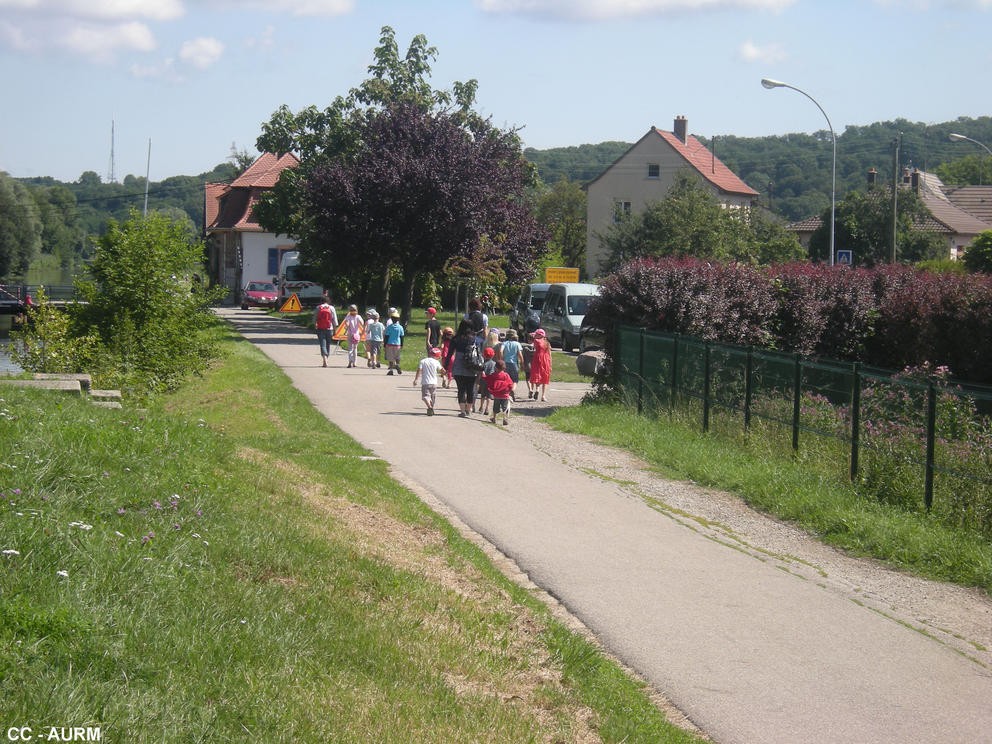 piste cyclable. enfant. canal. habitation.