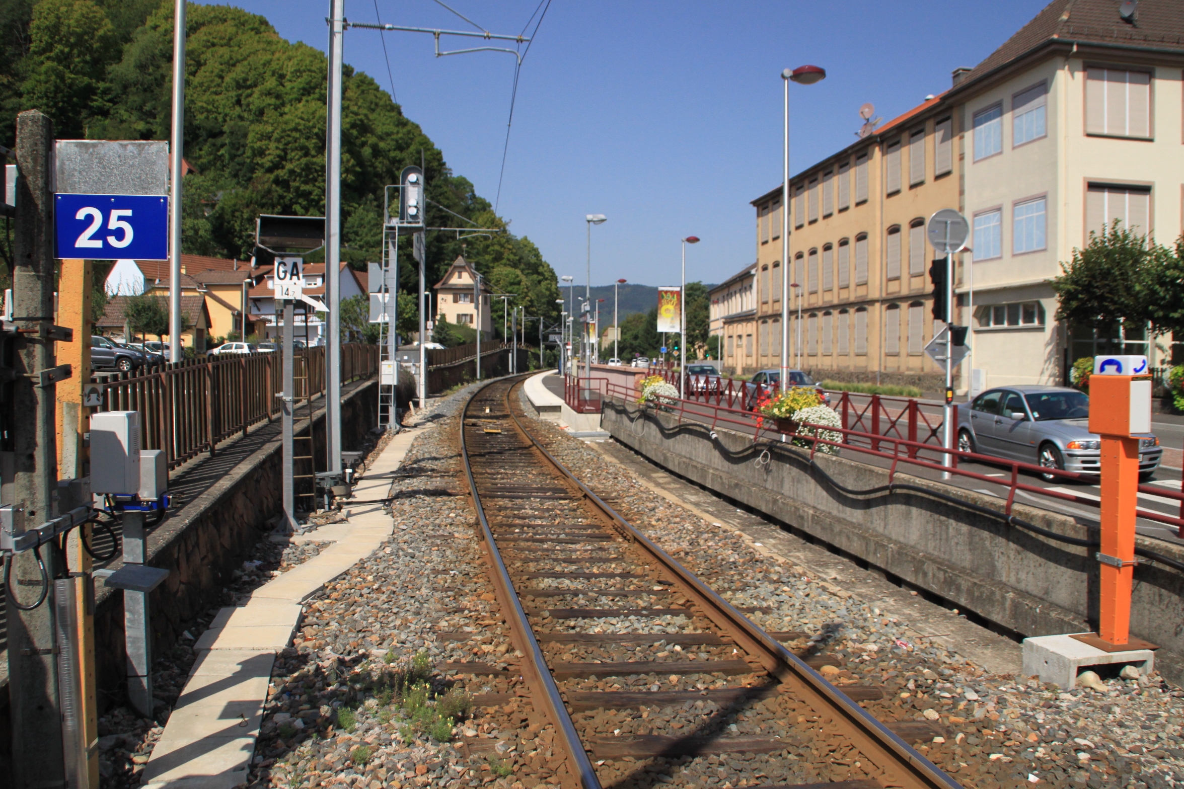 Station TramTrain. Voie ferrée. Route.