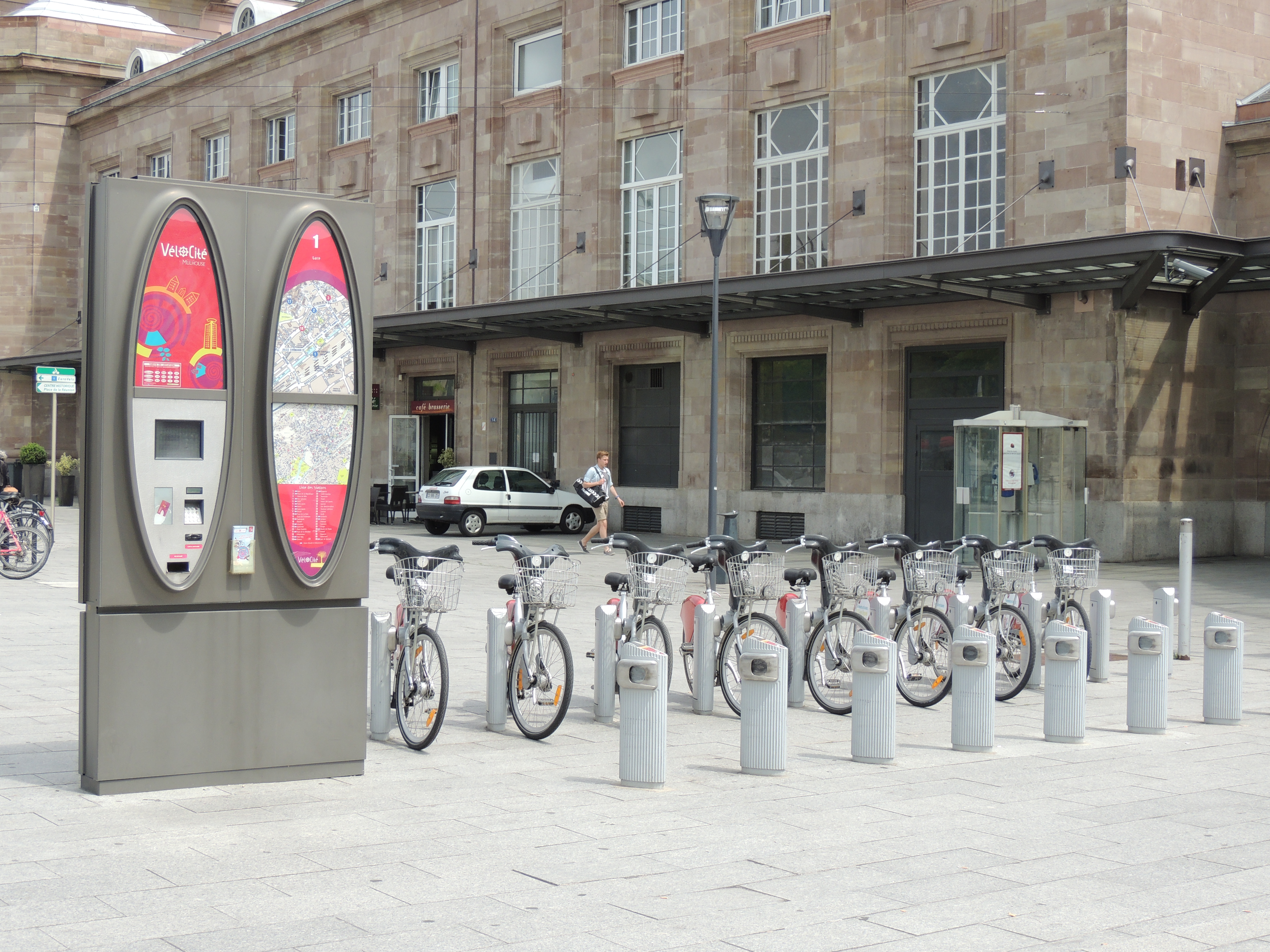 Vélocité. Gare. Station. Piéton. Borne.