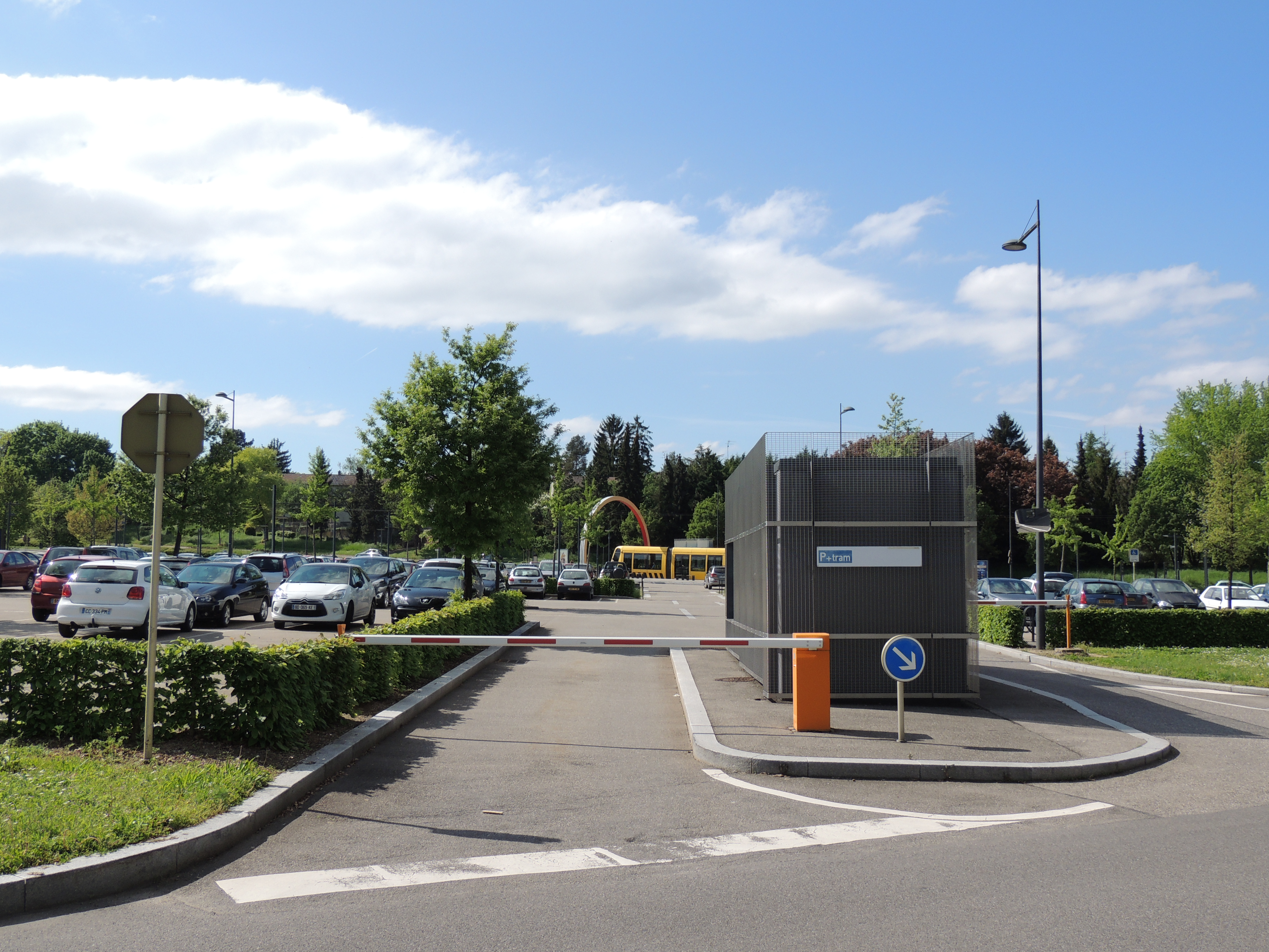 Parking relais. Université. Entrée. Voiture. Tram.