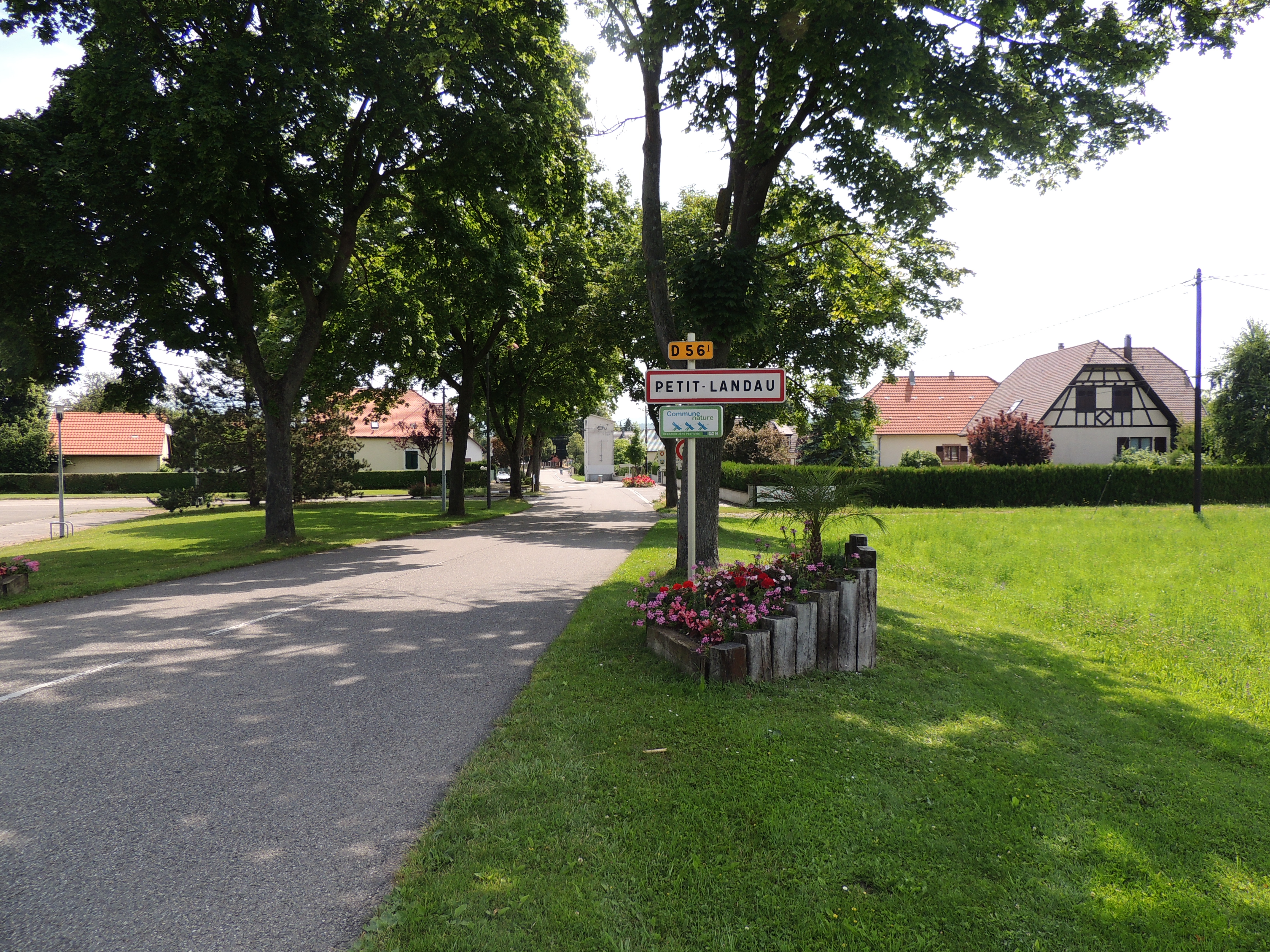 Entrée de ville. Panneau. Maison. Arbre.
