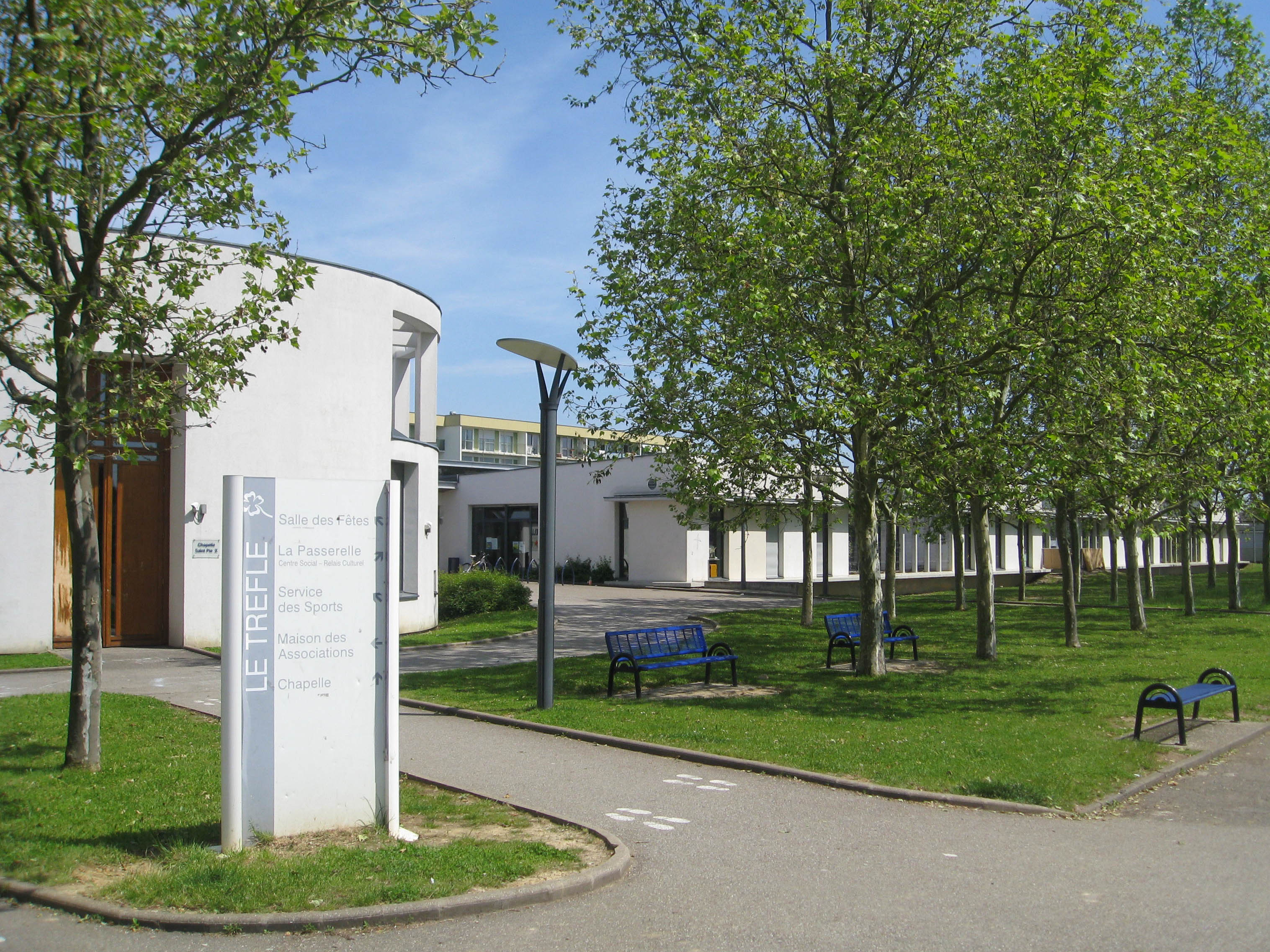Le Trèfle. Association culturelle. Arbre. Panneau.