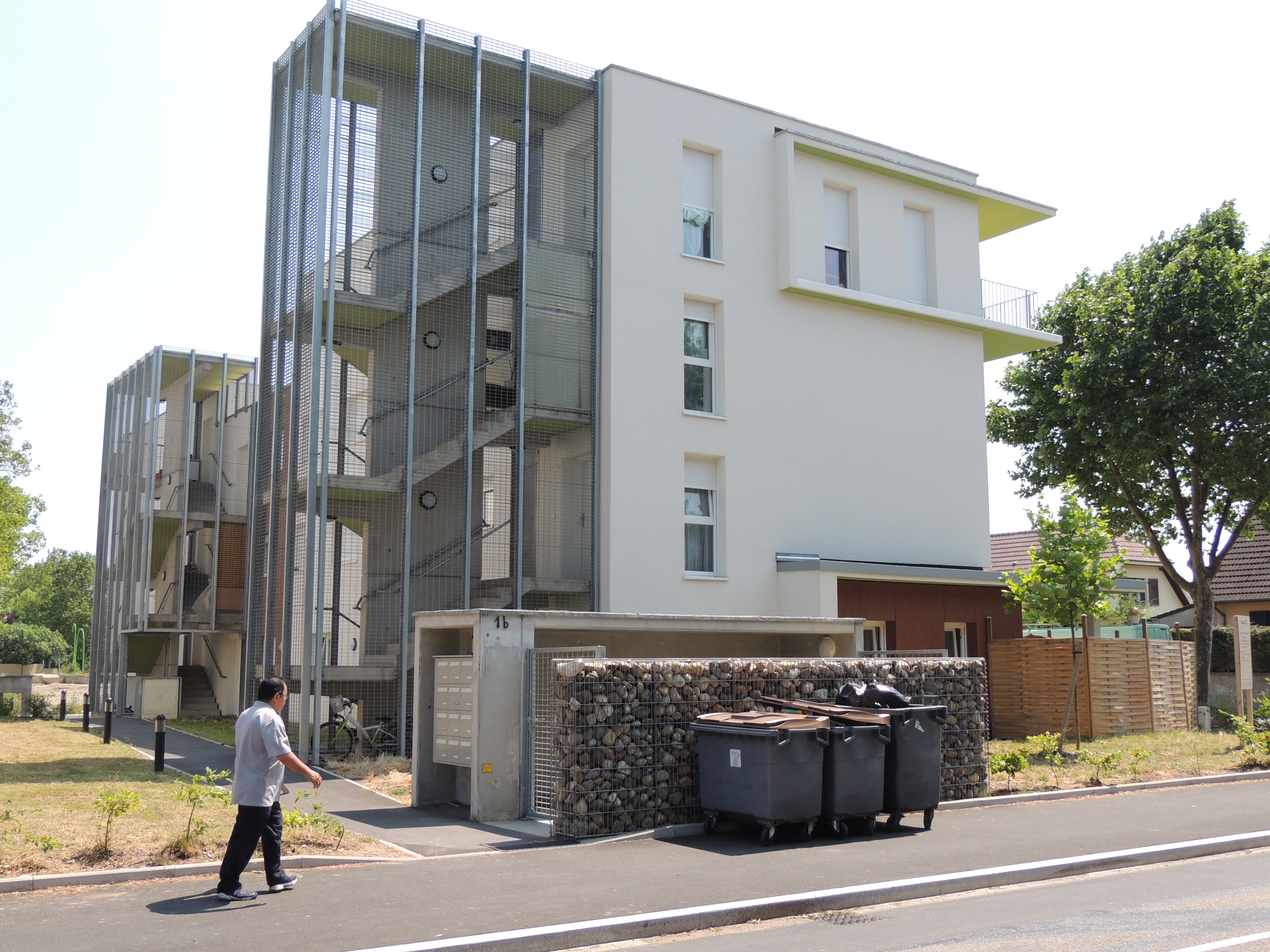 Résidence. Piéton. Immeuble collectif.