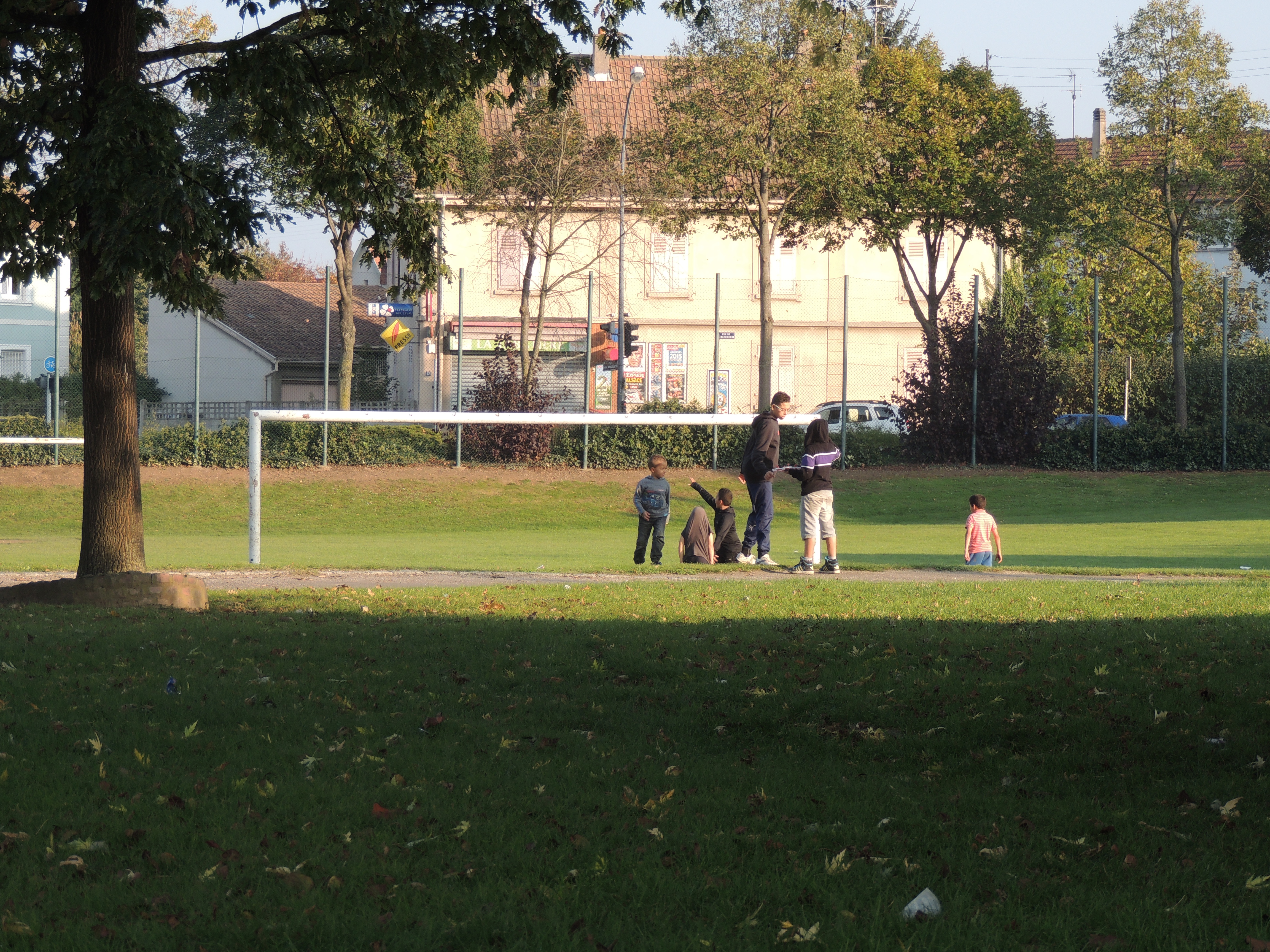 Jeunes se trouvant sur un terrain de foot.