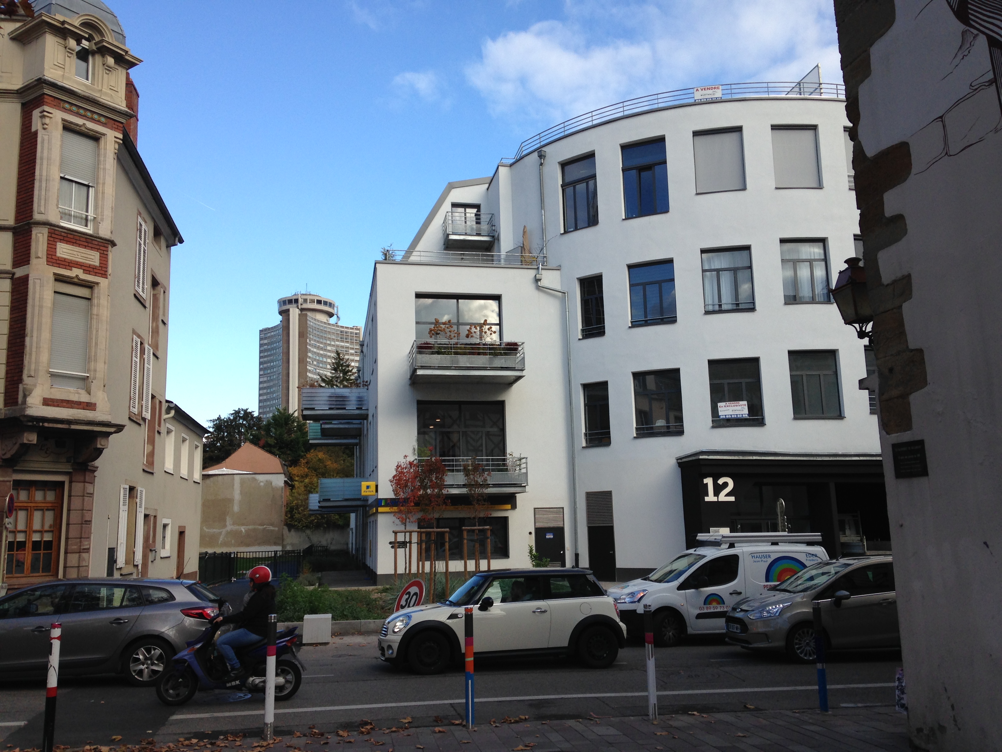 Ancien garage transformé en immeuble d'habitation.