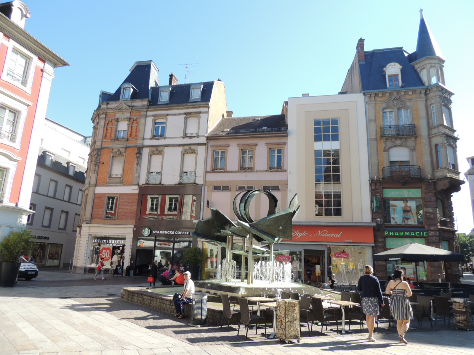 Fontaine de la place des Victoires. commerces.