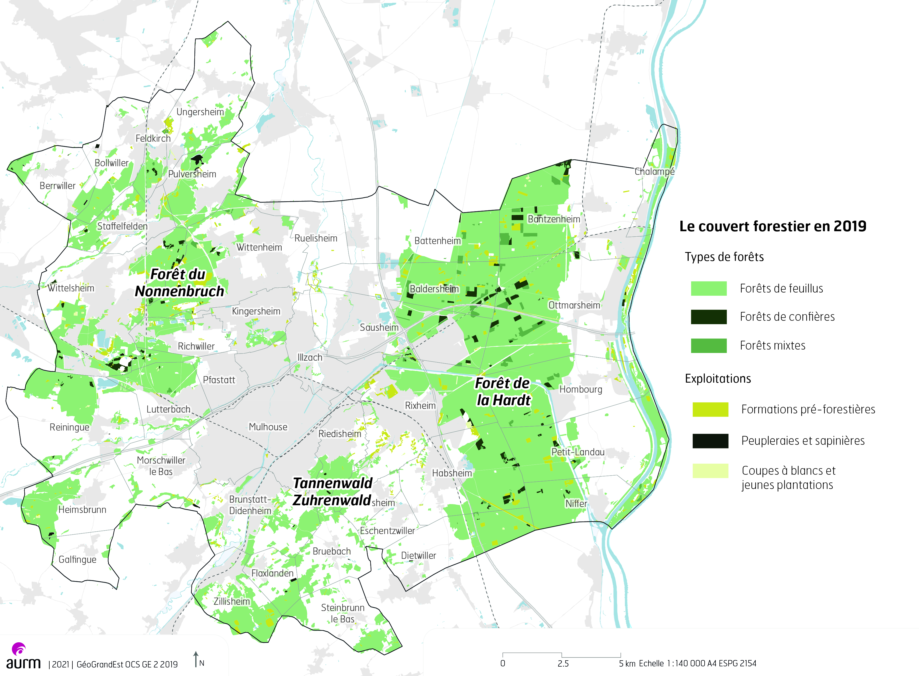 Le couvert forestier de l'agglomération mulhousienne en 2019