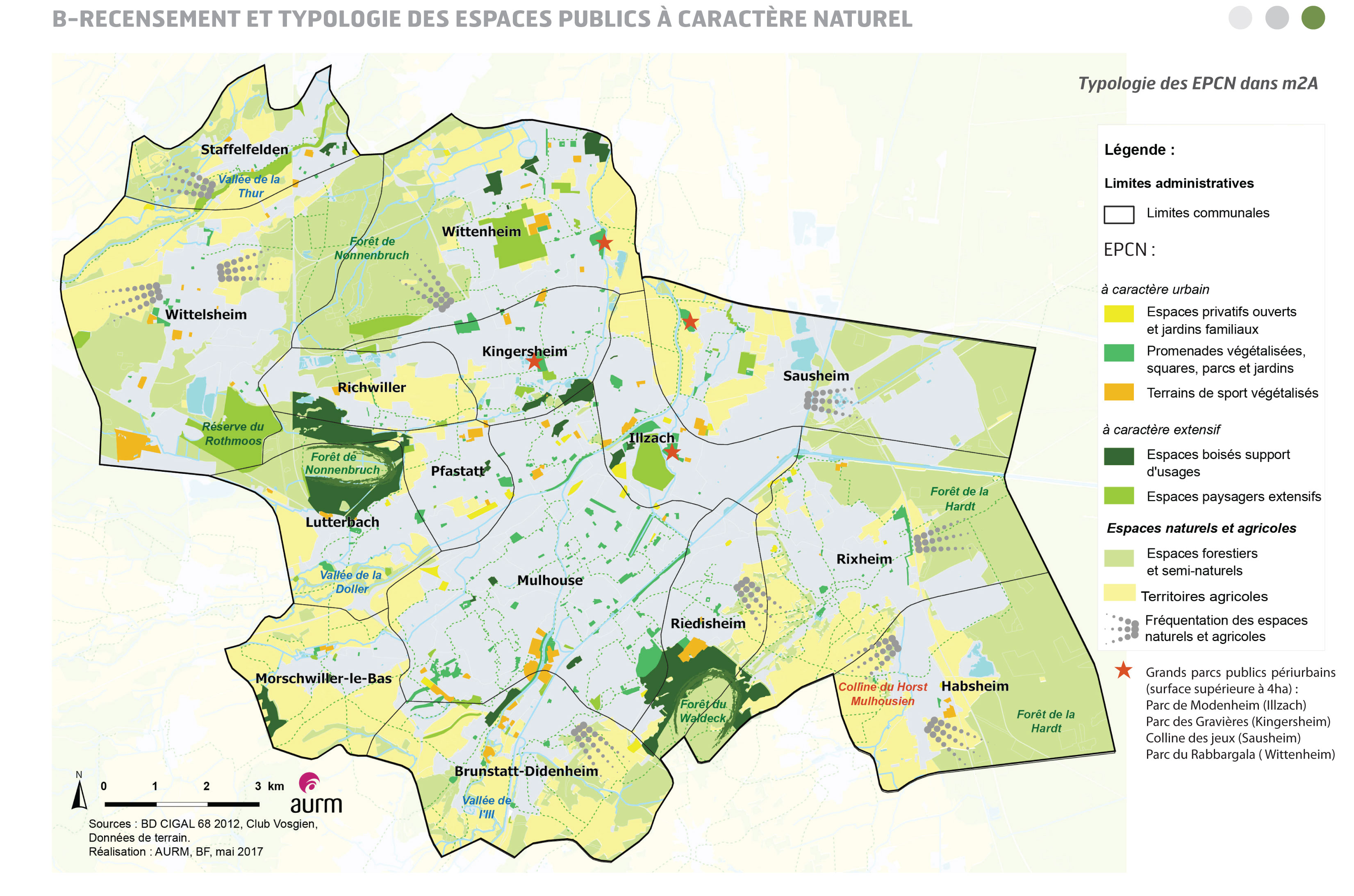 Typologie des espaces publics à caractère naturel sur le territoire des communes de la première communes mulhousienne