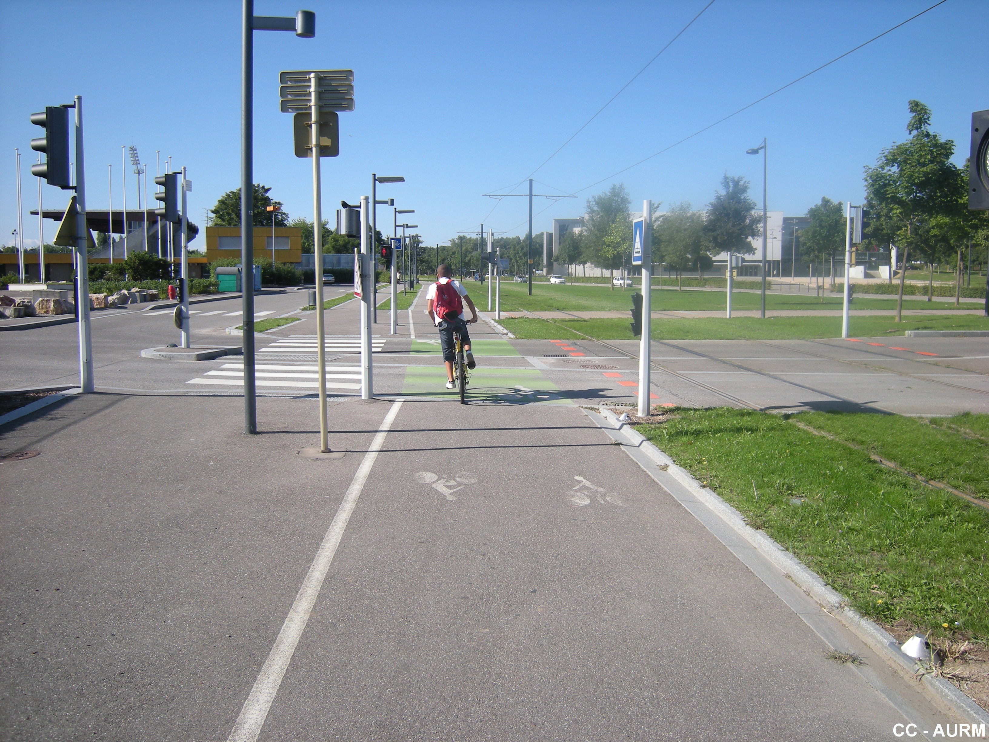 piste cyclable. passsage piéton. rail.