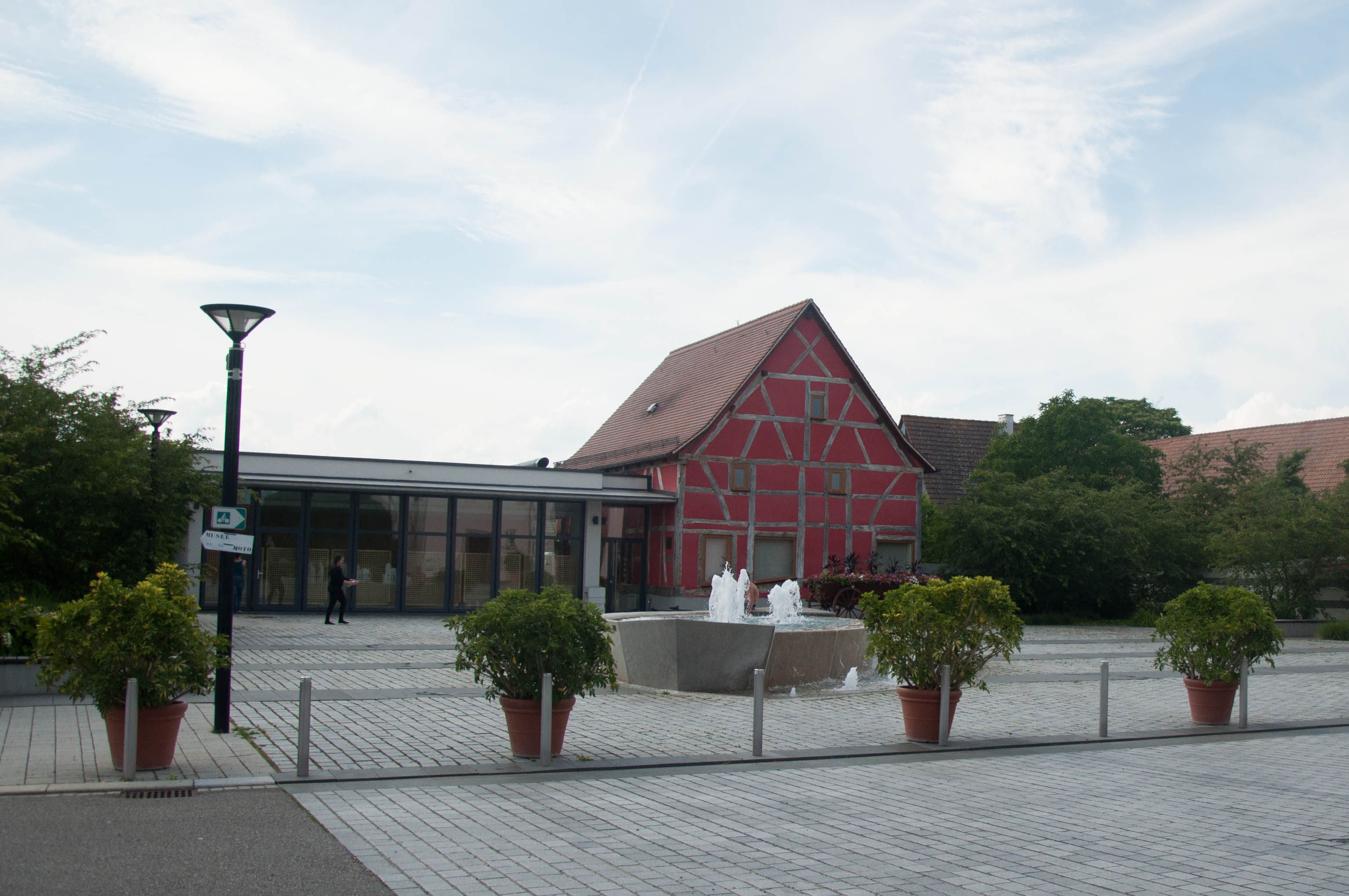 Place de l'église. Médiathèque. Fontaine.