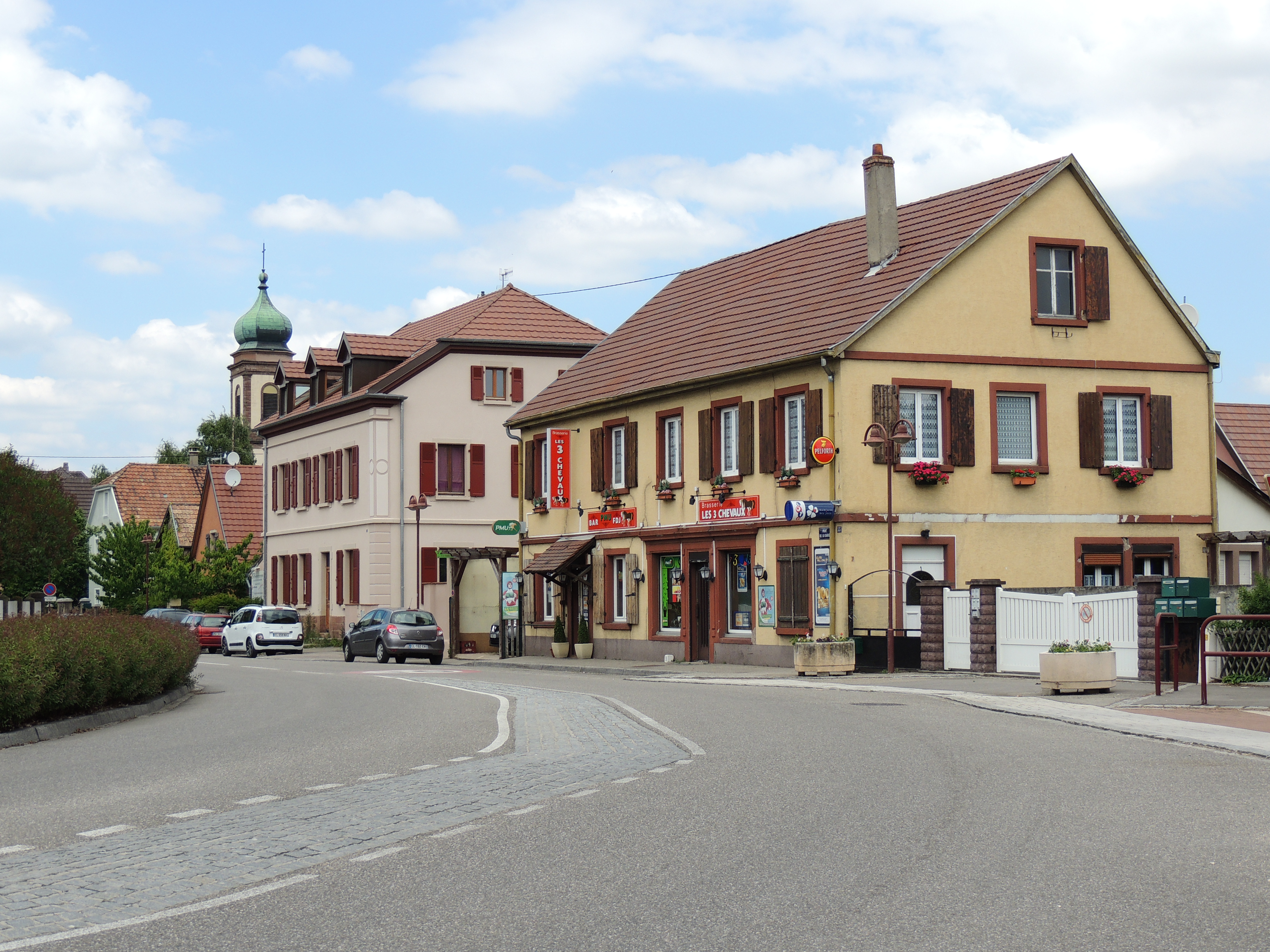 Route. Restaurant. Habitation. Voiture. Eglise.