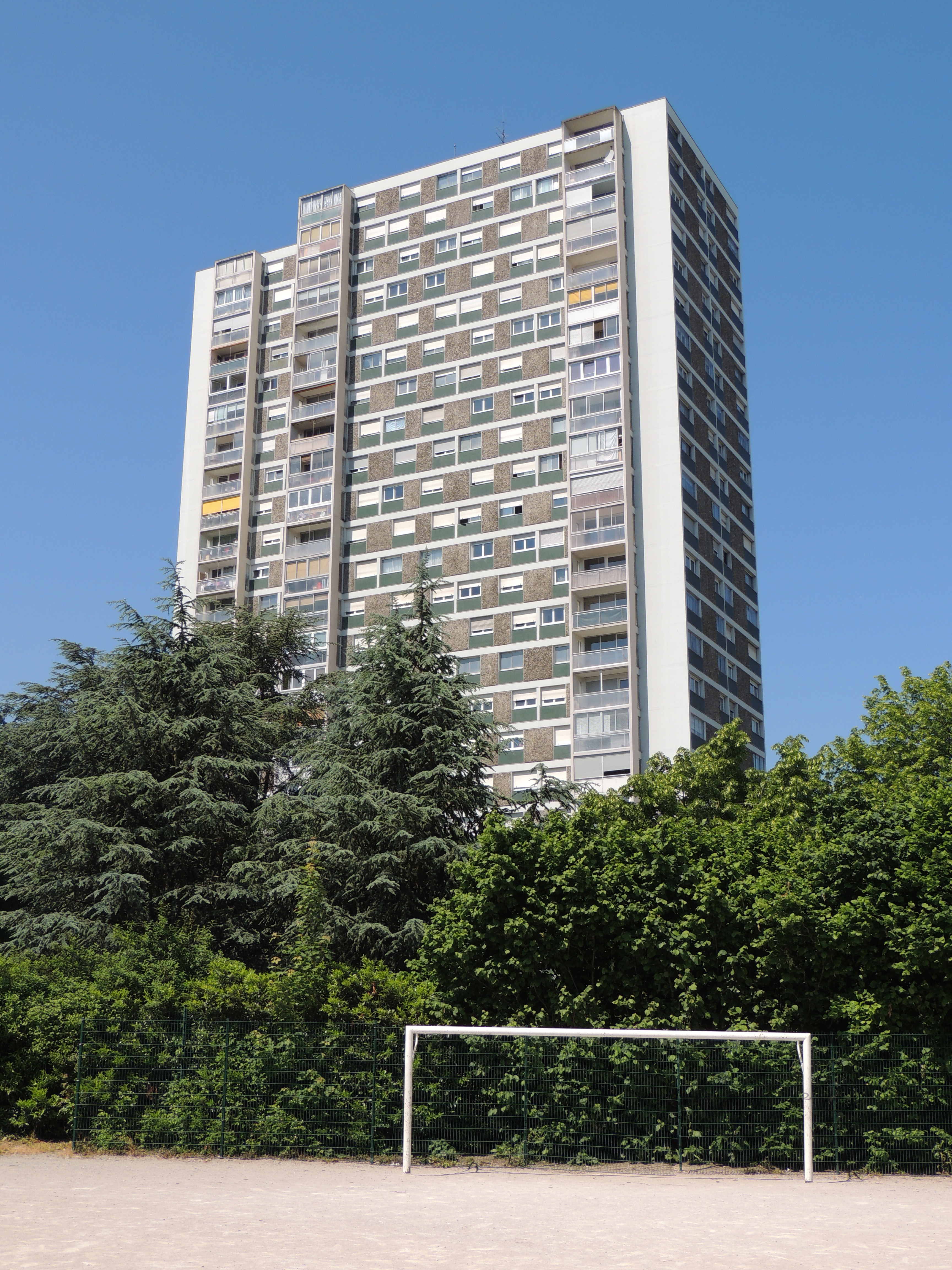 Immeuble. Terrain de foot.