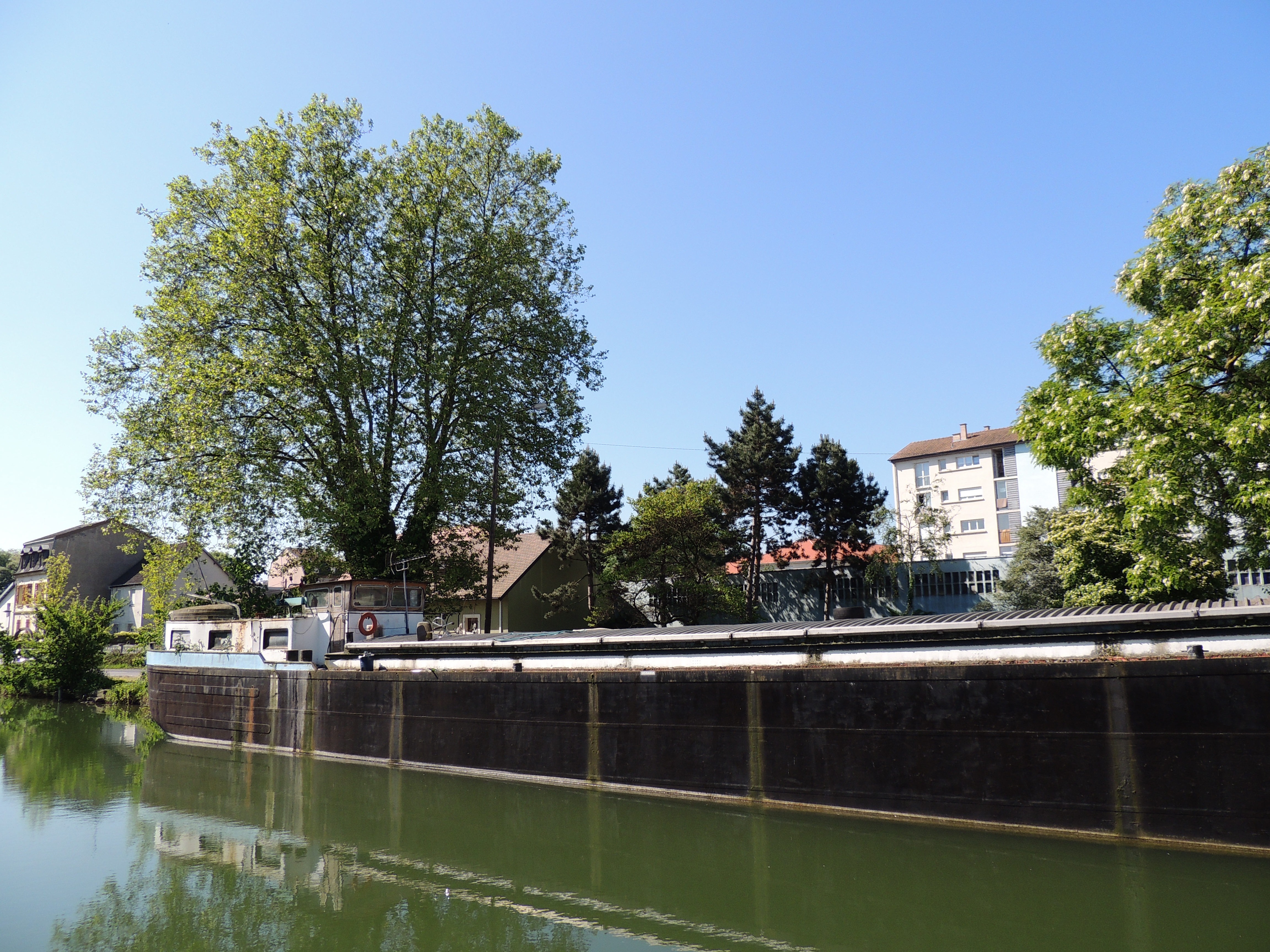 Péniche. Canal. Arbre.