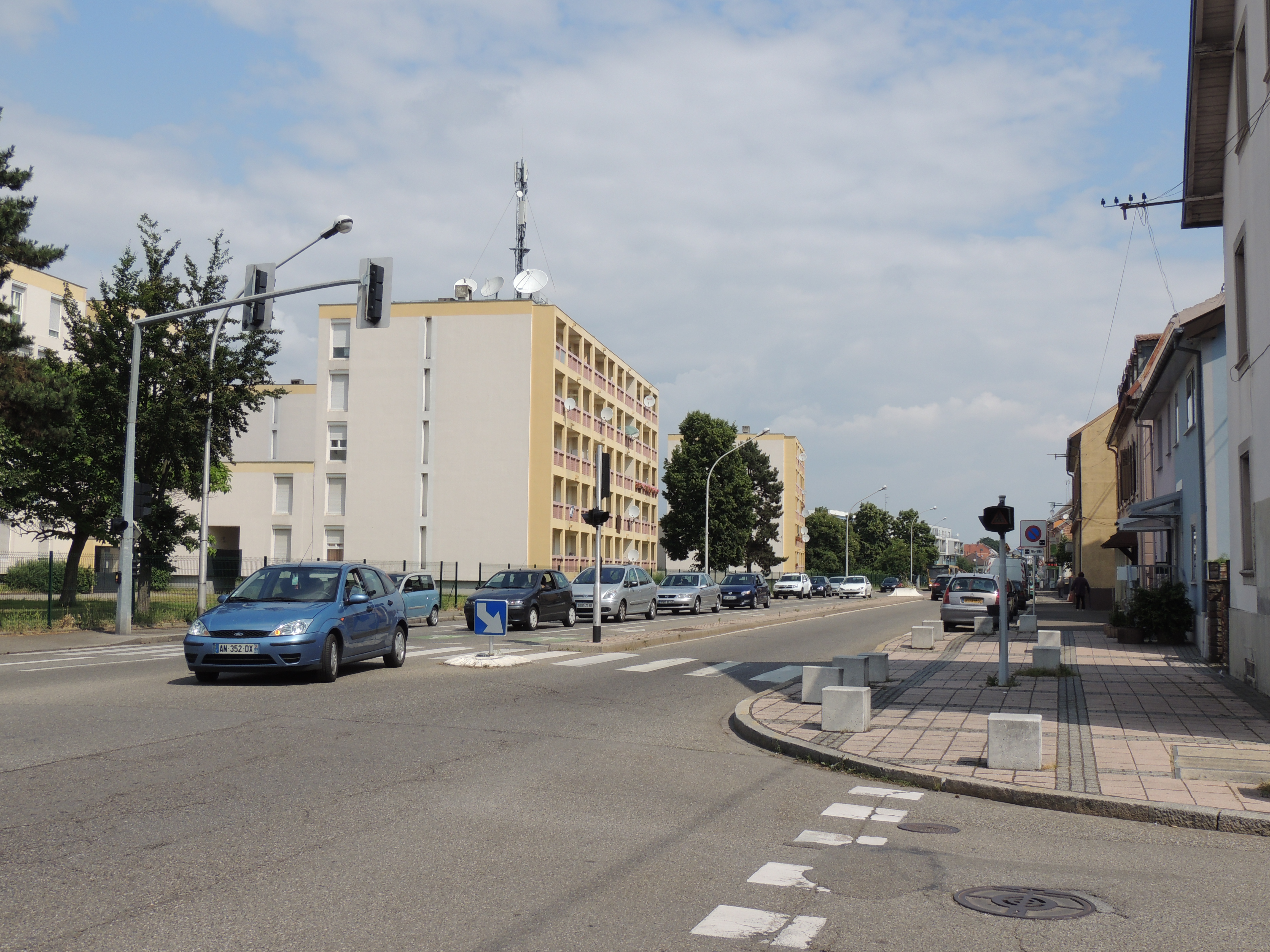 Route Départementale 20. Voiture. Immeuble.