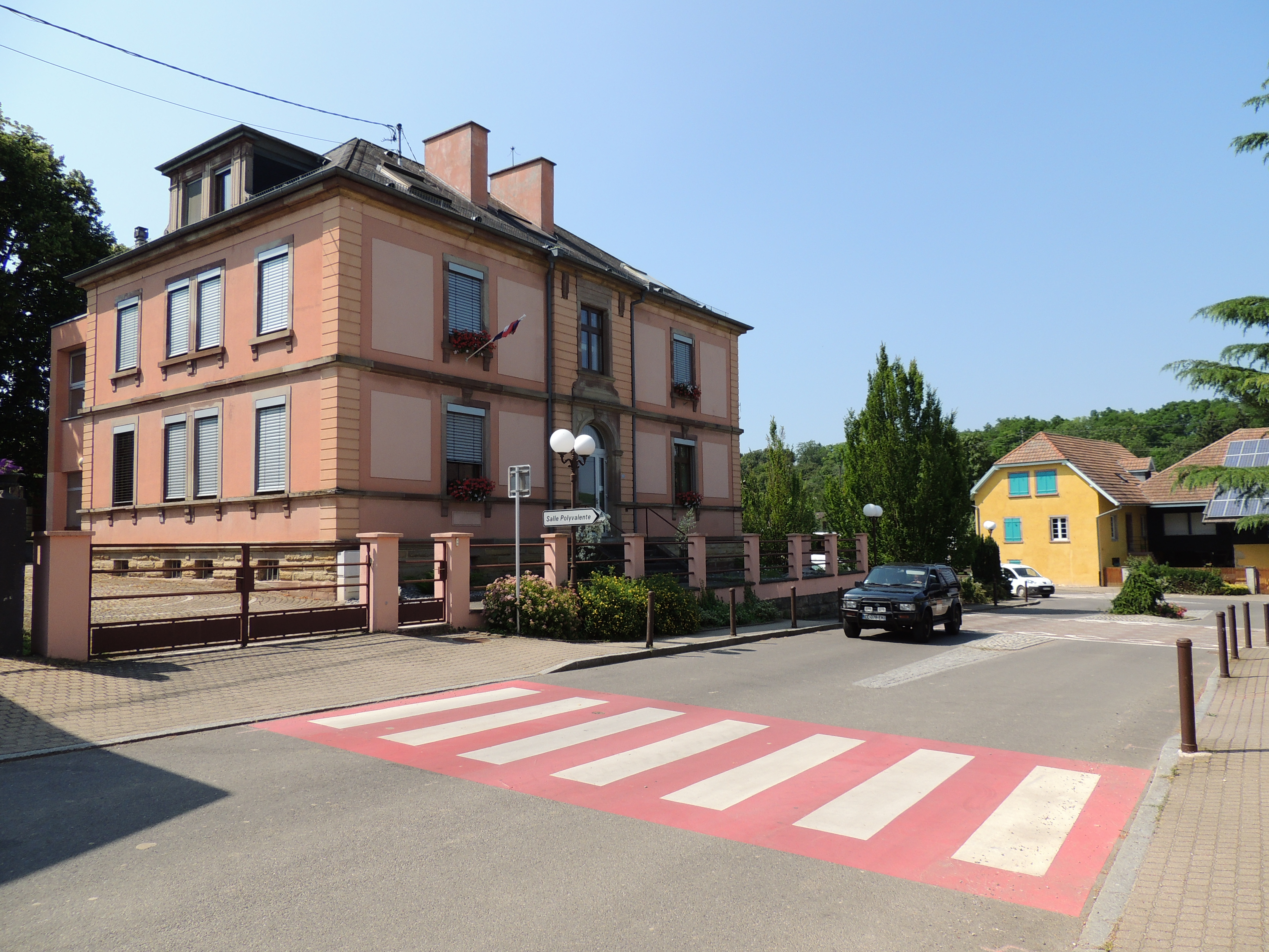 Mairie. Route. Voiture. Habitation.