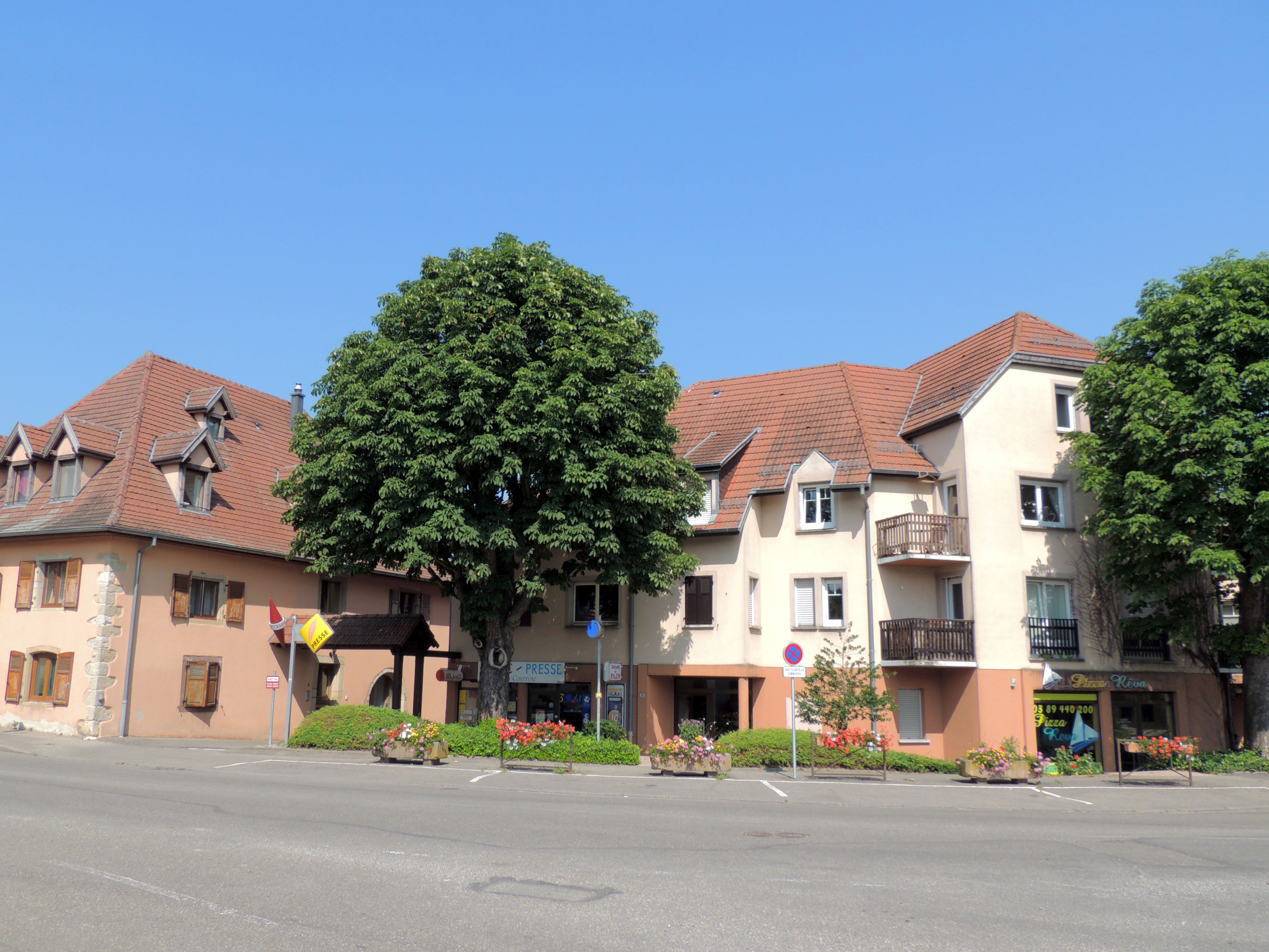 Commerces. Habitation. Arbre.