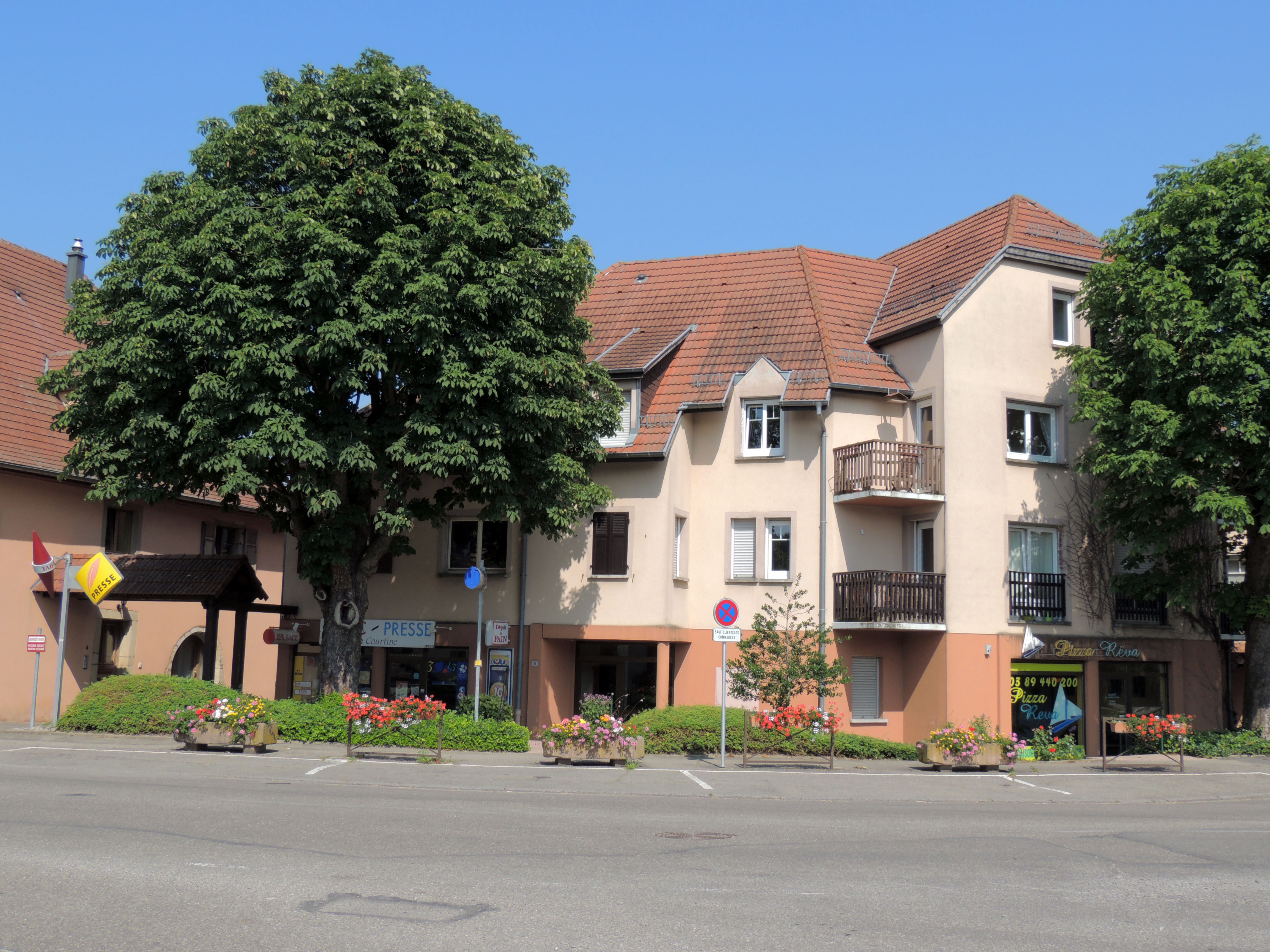 Commerces. Habitation. Arbre.