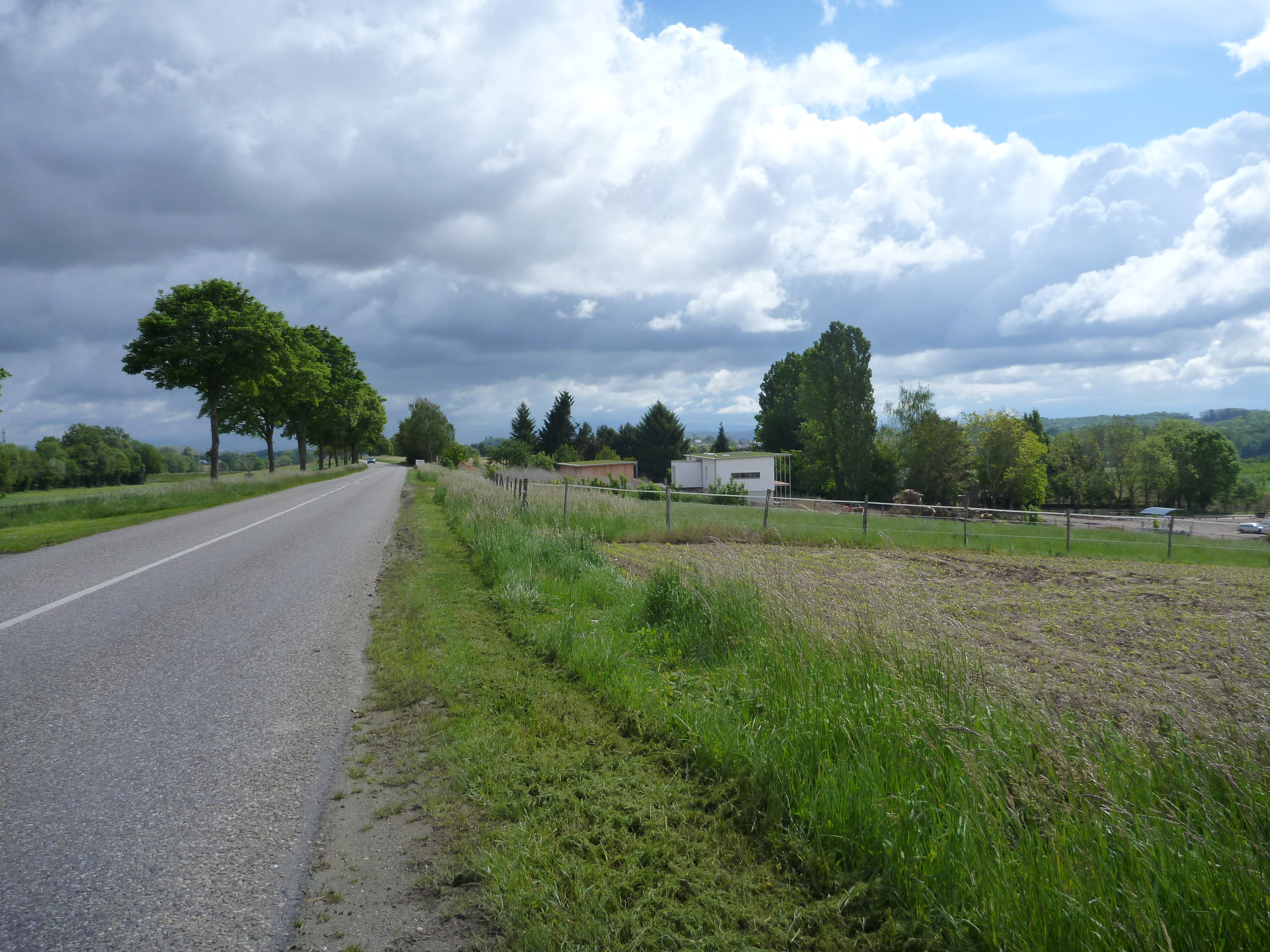 Champ. Parc à vache. Maisons.