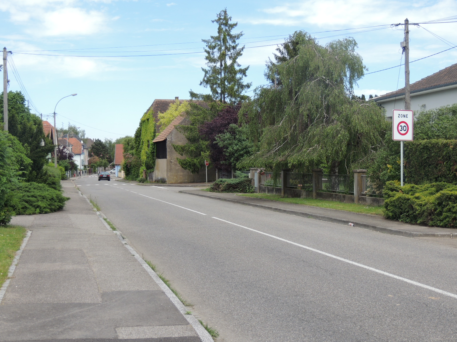 Voie limitée zone 30. Maisons.