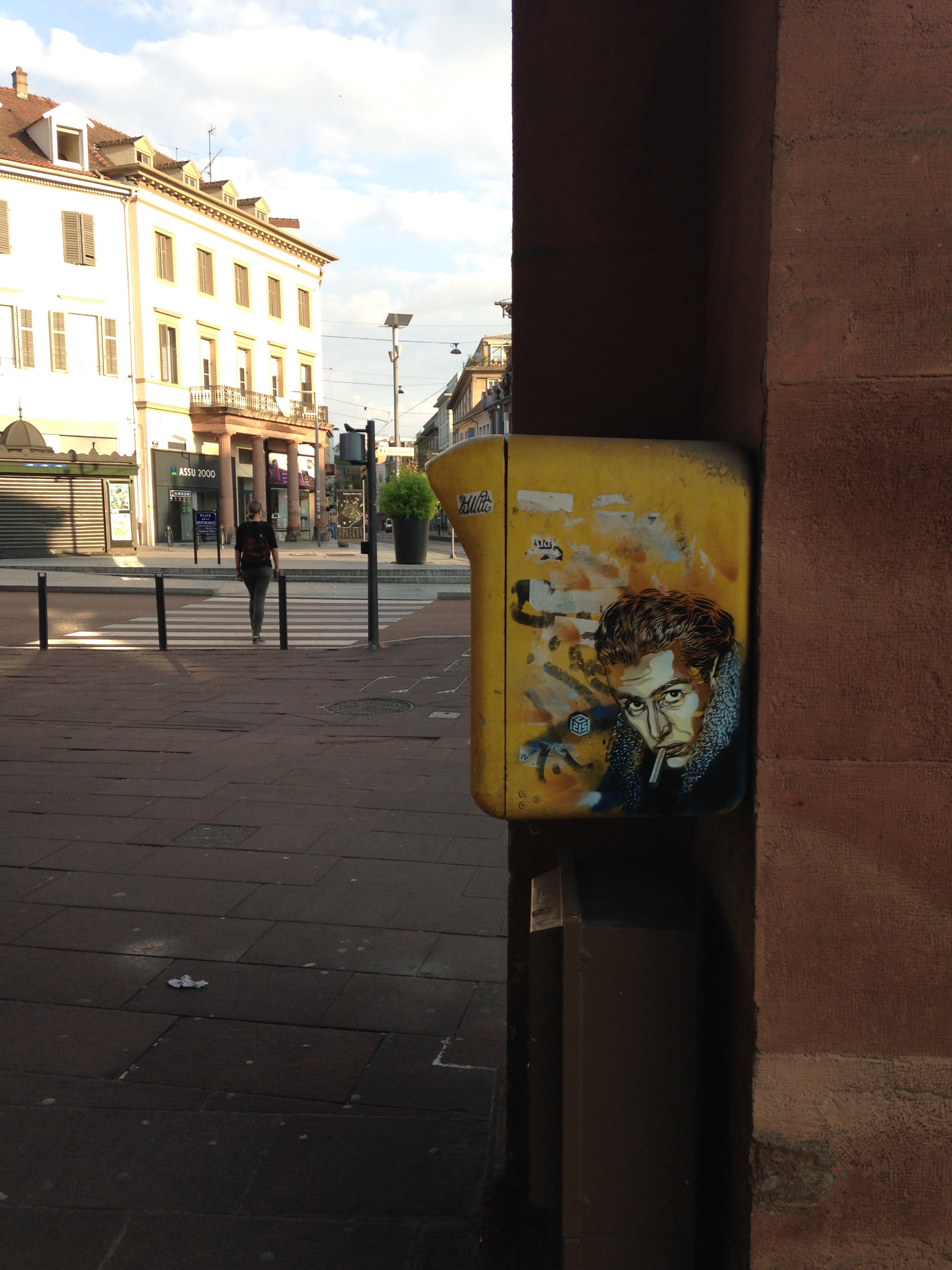 Une des vingt boîte aux lettres (celle-ci se trouvant place de la République) peinte par l'artiste C215 et dont la peinture représente ici le peintre Bernard Buffet.