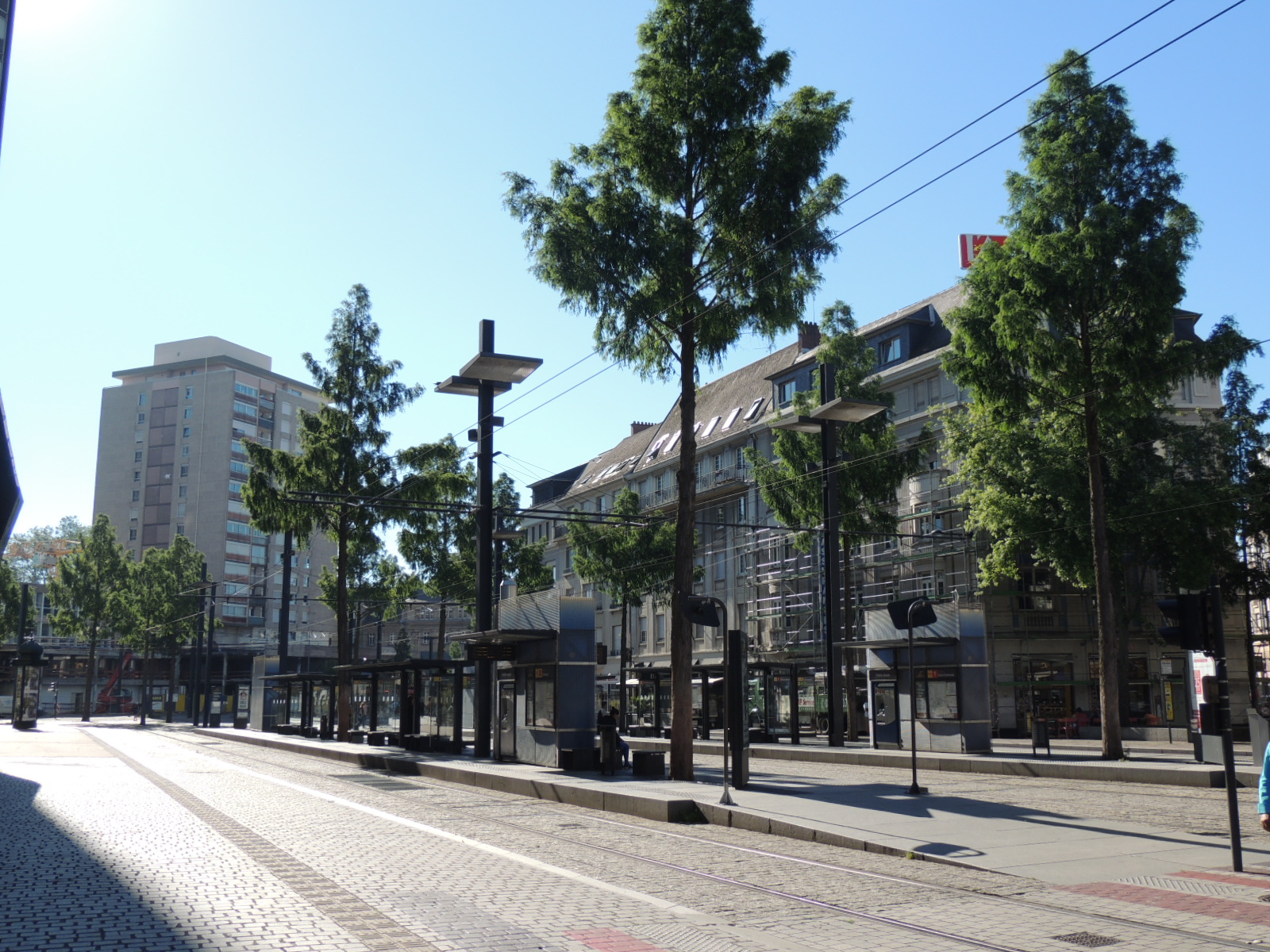 Voies de circulation du tram et quais.