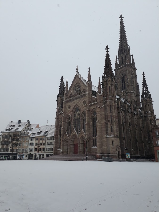2018Mulhouse sous la neige, temple Saint-Etienne